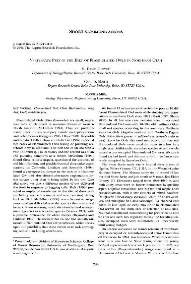 Published in Journal of Raptor Research, in 2003, in volume 37, issue 3, pages 244-246