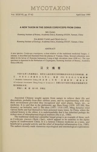 Published in Mycotaxon, in 1990, in volume 37, pages 57-62