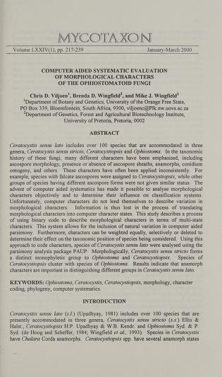 Published in Mycotaxon, in 2000, in volume 74, issue 1, pages 217-239