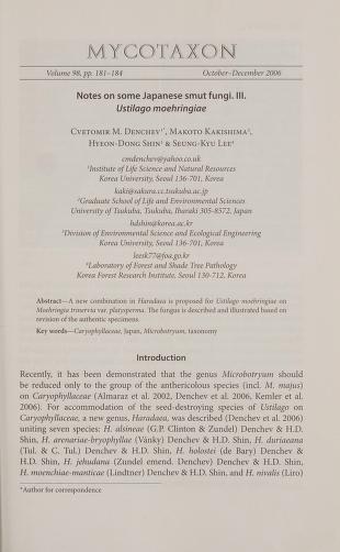 Published in Mycotaxon, in 2006, in volume 98, pages 181-184