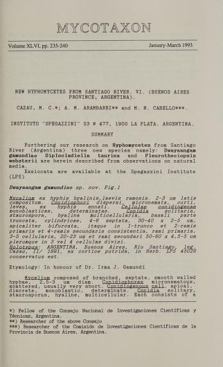 Published in Mycotaxon, in 1993, in volume 46, pages 235-240