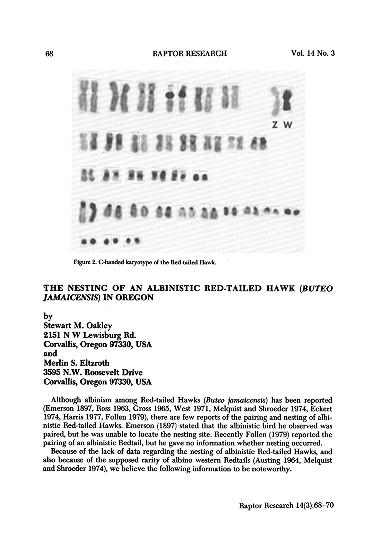 Published in Raptor Research, in 1980, in volume 14, issue 3, pages 68-70