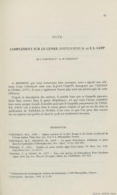 Published in Cryptogamie. Algologie, in 1981, in volume 2, issue 2, pages 83