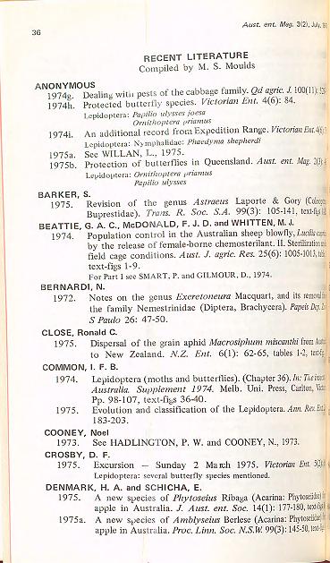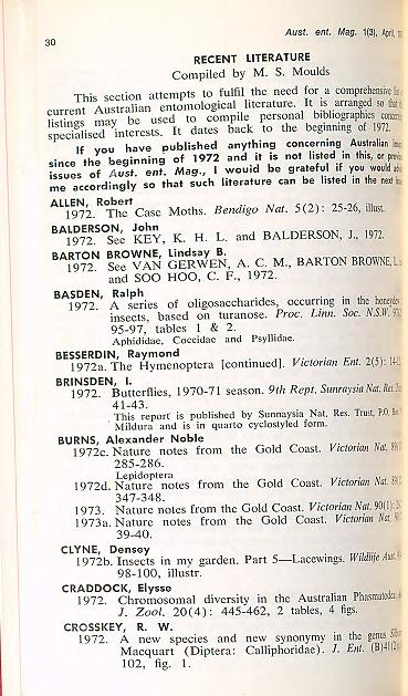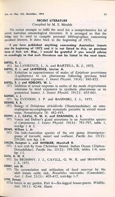 Published in Australian entomological magazine, in 1973, in volume 1, issue 3, pages 30-36