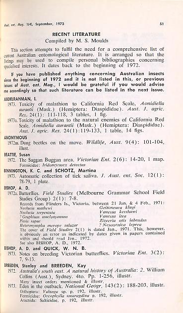 Published in Australian entomological magazine, in 1973, in volume 1, issue 4, pages 51-56