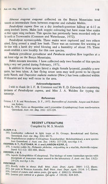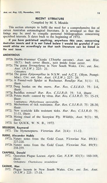 Published in Australian entomological magazine, in 1972, in volume 1, issue 2, pages 13-16