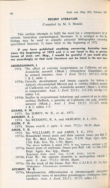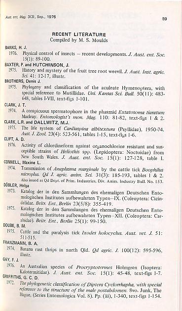 Published in Australian entomological magazine, in 1976, in volume 3, issue 3, pages 59-60