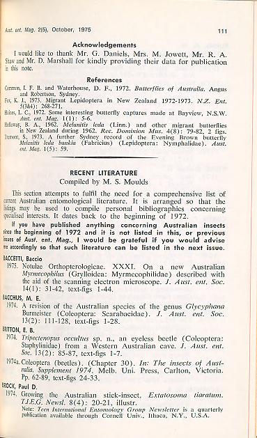 Published in Australian entomological magazine, in 1975, in volume 2, issue 5, pages 111-116