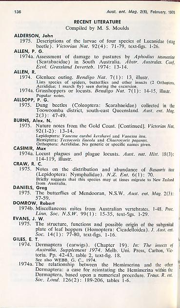 Published in Australian entomological magazine, in 1976, in volume 2, issue 6, pages 136-140
