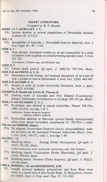 Published in Australian entomological magazine, in 1976, in volume 3, issue 4, pages 79-80