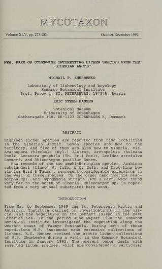 Published in Mycotaxon, in 1992, in volume 45, pages 275-284