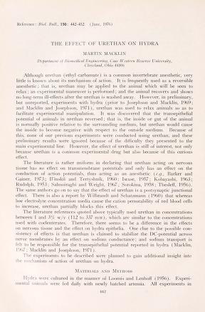 Published in Biol Bull, in 1976, in volume 150, pages 442-452