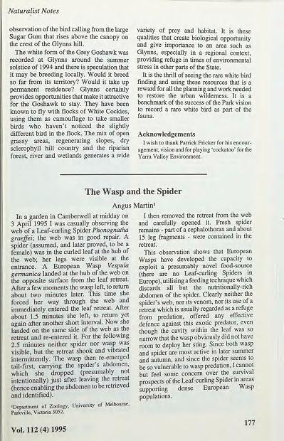 Published in Victorian Naturalist, in 1995, in volume 112, pages 177