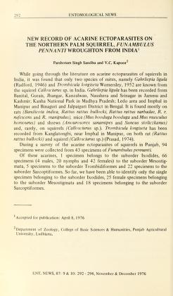 Published in Entomological News, in 1976, in volume 87, pages 292-294