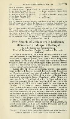 Published in Entomologist's Record and Journal of Variation, in 1974, in volume 86, issue 4, pages 114