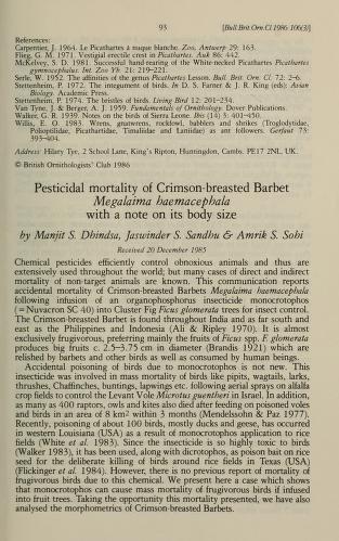 Published in Bulletin of The British Ornithologists' Club, in 1986, in volume 106, pages 93-96