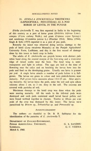 Published in Journal of The Bombay Natural History Society, in 1968, in volume 65, issue 3, pages 799
