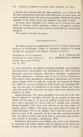 Published in Journal of The Bombay Natural History Society, in 1976, in volume 72, issue 3, pages 872-873