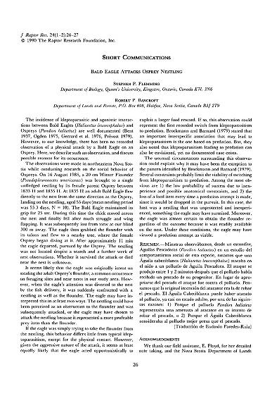 Published in Journal of Raptor Research, in 1990, in volume 24, issue 1-2, pages 26-27