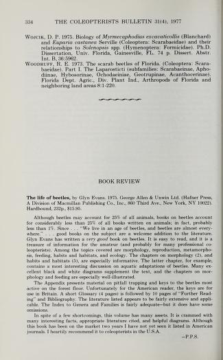 Published in The Coleopterists Bulletin, in 1977, in volume 31, issue 4, pages 334