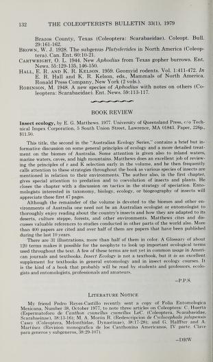 Published in The Coleopterists Bulletin, in 1979, in volume 33, issue 1, pages 132
