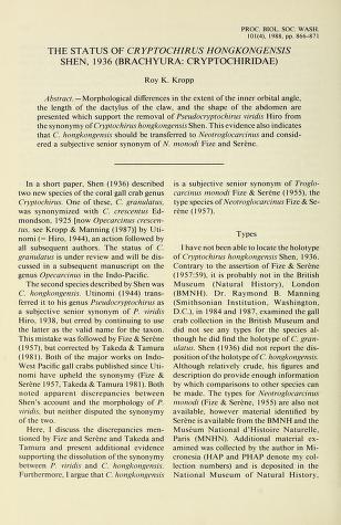Published in Proceedings of The Biological Society of Washington, in 1988, in volume 101, pages 866-871