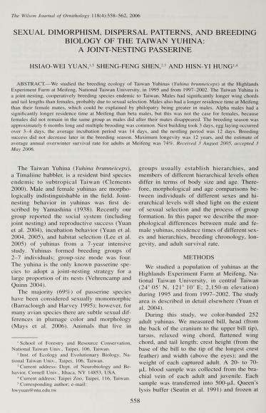 Published in The Wilson Journal of Ornithology, in 2006, in volume 118, issue 4, pages 558-562