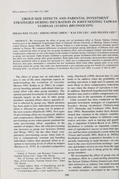 Published in The Wilson Bulletin, in 2005, in volume 117, issue 3, pages 306-312