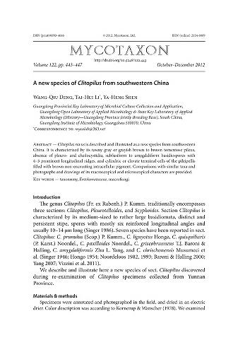 Published in Mycotaxon, in 2013, in volume 122, issue 1, pages 443-447