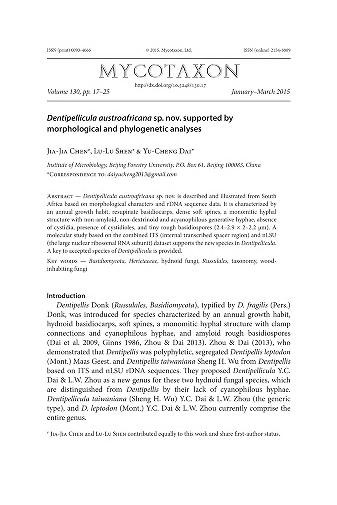 Published in Mycotaxon, in 2015, in volume 130, issue 1, pages 17-25