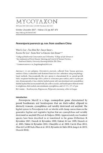 Published in Mycotaxon, in 2018, in volume 132, issue 4, pages 867-874