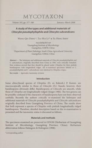 Published in Mycotaxon, in 2008, in volume 103, pages 377-380