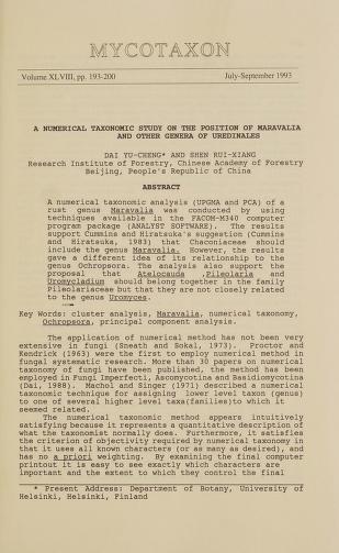 Published in Mycotaxon, in 1993, in volume 48, pages 193-200