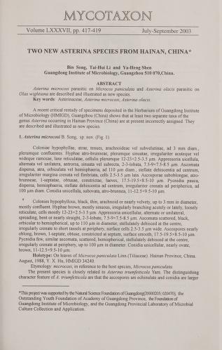Published in Mycotaxon, in 2003, in volume 87, pages 417-419