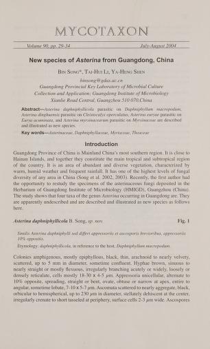 Published in Mycotaxon, in 2004, in volume 90, issue 1, pages 29-34