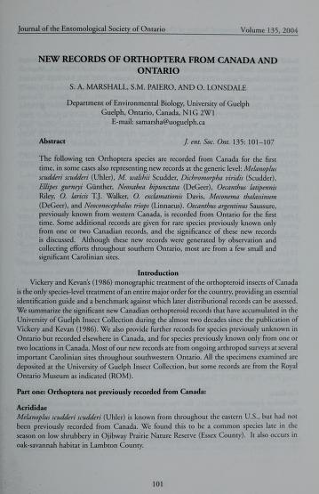 Published in Journal of the Entomological Society of Ontario, in 2004, in volume 135, pages 101-107
