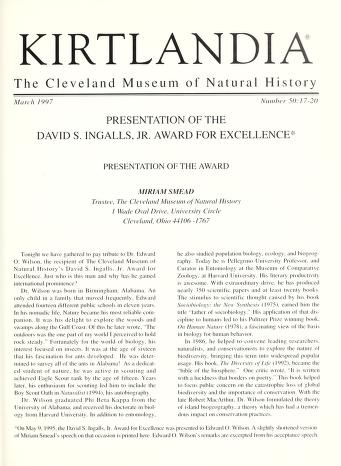 Published in Kirtlandia, in 1997, in volume 50, pages 17-20
