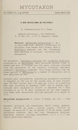 Published in Mycotaxon, in 1989, in volume 34, issue 2, pages 637-642