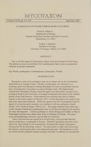 Published in Mycotaxon, in 1998, in volume 67, pages 211-215