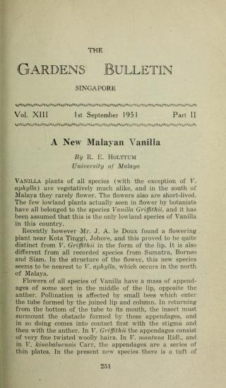 Published in Gardens' Bulletin, Singapore, in 1951, in volume 13, issue 2, pages 251-253
