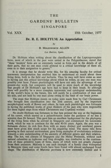 Published in Gardens' bulletin, Singapore, in 1977, in volume 30, pages 1-3