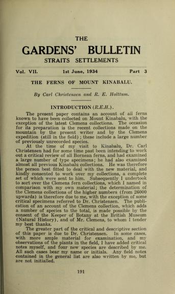 Published in Gardens' Bulletin, Straits Settlements, in 1934, in volume 7, issue 3, pages 191-316