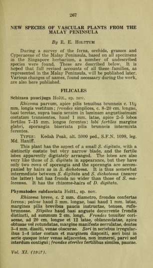 Published in Gardens' Bulletin, Singapore, in 1956, in volume 15, pages 267-273