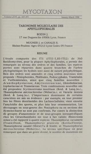 Published in Mycotaxon, in 1998, in volume 66, pages 445-491
