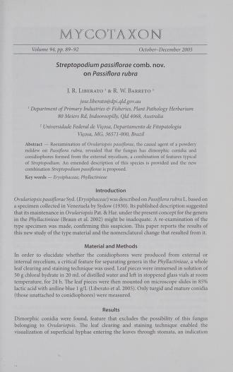 Published in Mycotaxon, in 2005, in volume 94, pages 89-92