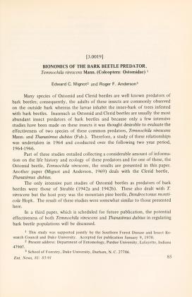 Published in Entomological News, in 1970, in volume 81, pages 85-91