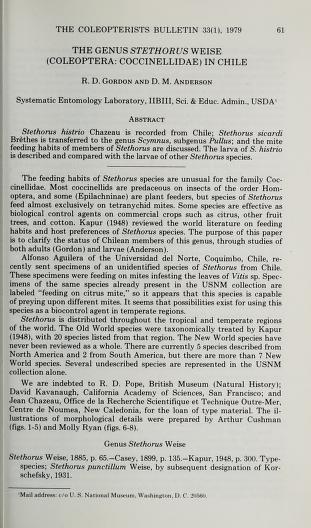 Published in The Coleopterists Bulletin, in 1979, in volume 33, issue 1, pages 61-67