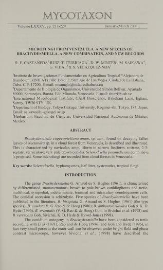 Published in Mycotaxon, in 2003, in volume 85, pages 211-229