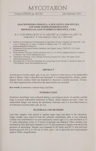 Published in Mycotaxon, in 2003, in volume 87, pages 385-393