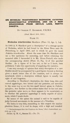 Published in The Journal of the Quekett Microscopical Club, in 1912, in volume 11, pages 371-374